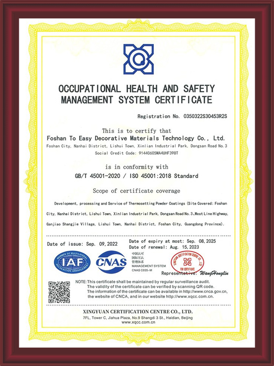 IAF-CNAS-OCCUPATIONAL HEALTH AND SAFETY MANAGEMENT SYSTEM CERTIFICATE