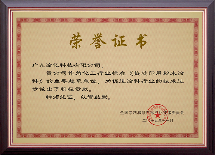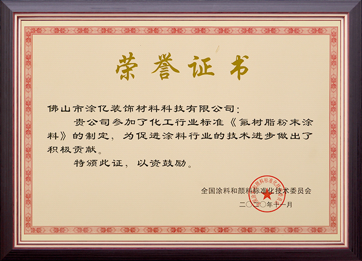 《氟樹(shù)脂粉末涂料》化工行業(yè)標(biāo)準(zhǔn)制定貢獻(xiàn)獎(jiǎng)