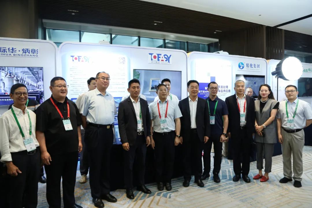 中國有色金屬工業(yè)協(xié)會黨委副書記、中國有色金屬加工工業(yè)協(xié)會理事長范順科(左5)一行蒞臨涂億展位參觀指導(dǎo)