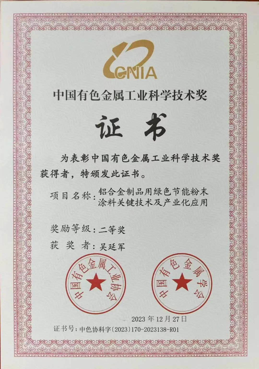 本次大會,主辦方舉行了莊重的頒獎儀式,以表彰中國鋁加工行業(yè)中表現(xiàn)卓越的優(yōu)秀供應(yīng)商。涂億科技憑借在產(chǎn)品質(zhì)量、售后服務(wù)、供貨能力、誠信履約等方面的優(yōu)異表現(xiàn),在眾多參評企業(yè)中脫穎而出,獲評“中國鋁加工行業(yè)優(yōu)秀供應(yīng)商(粉末涂料)”榮譽稱號。